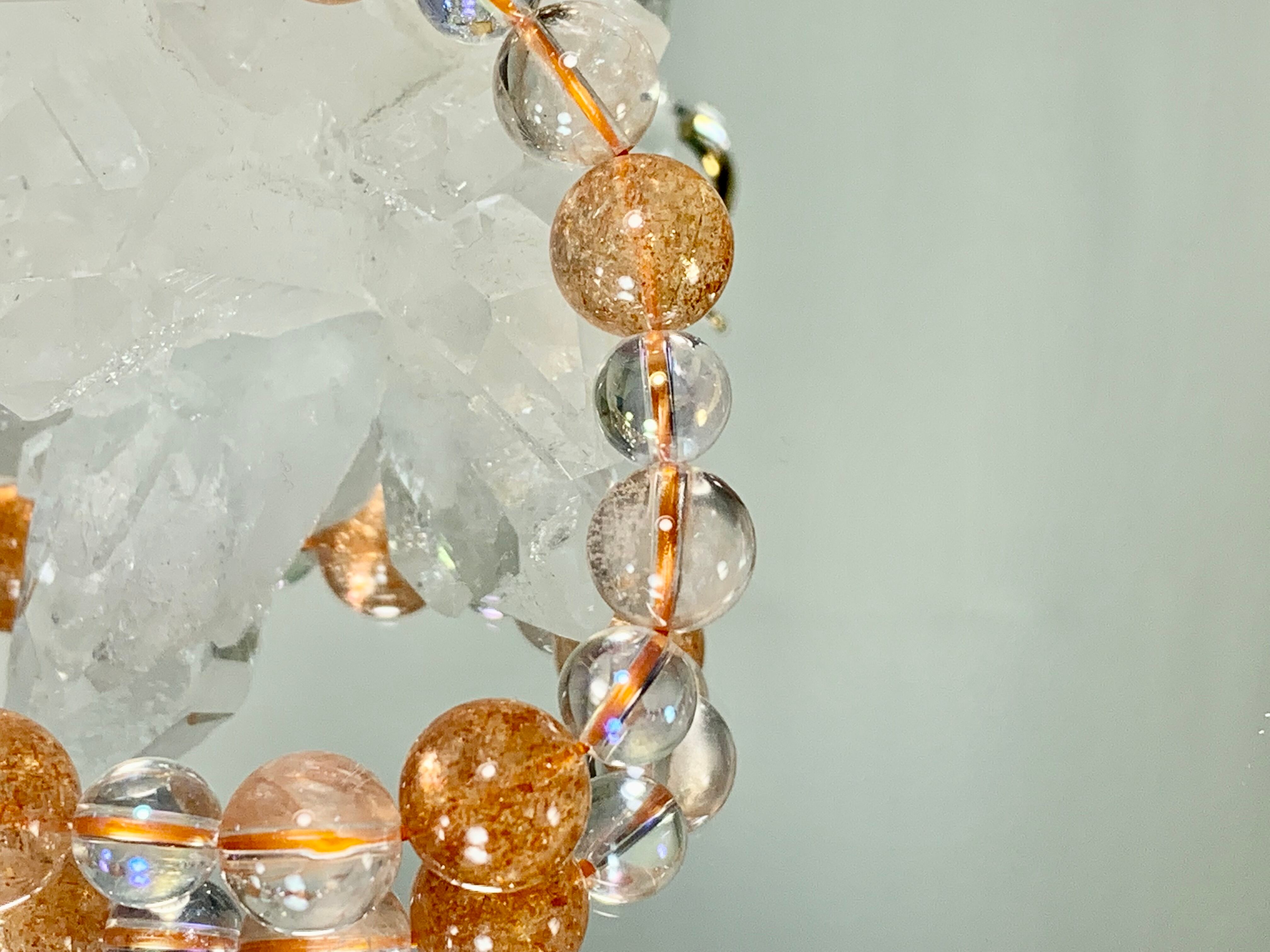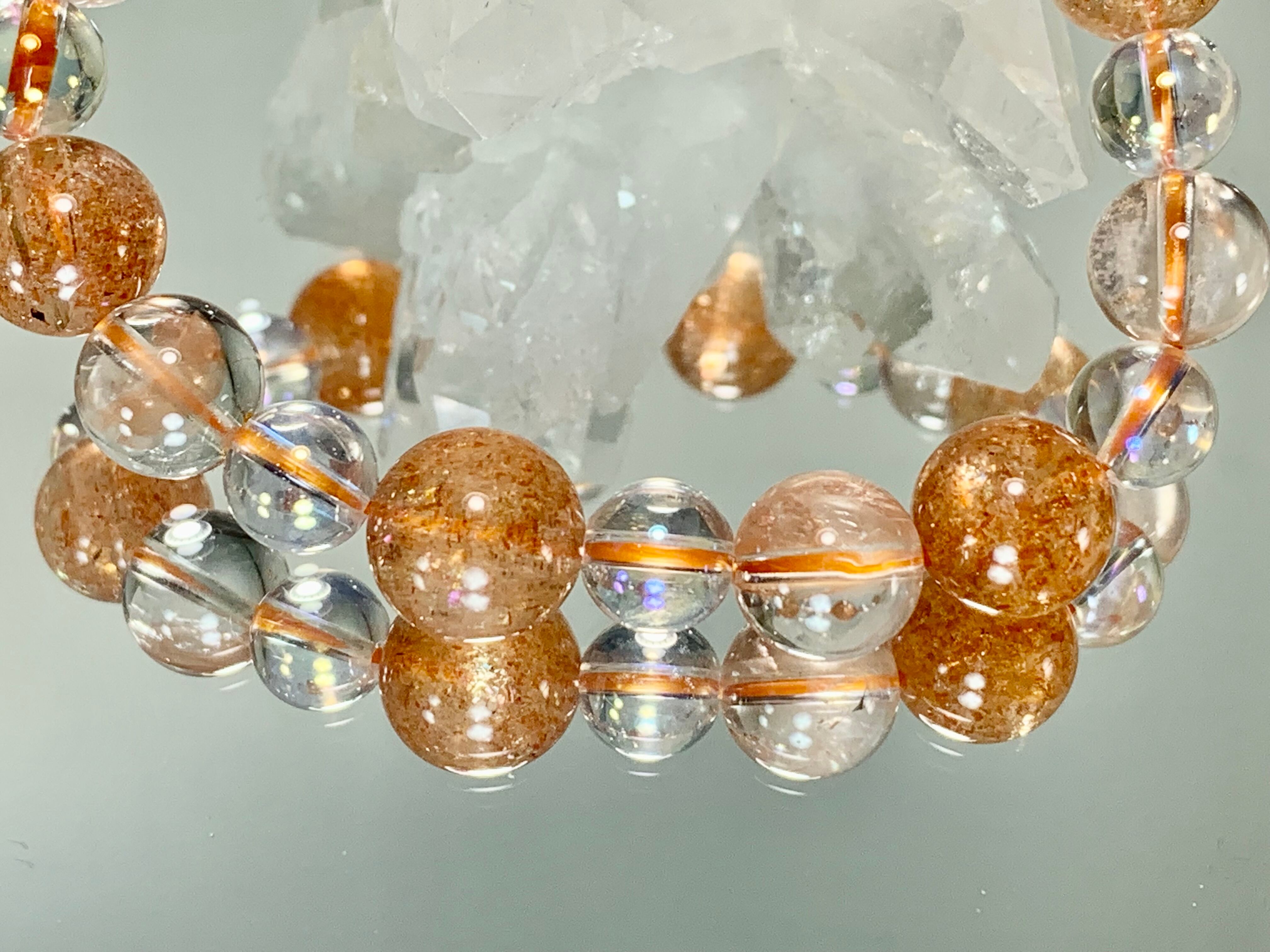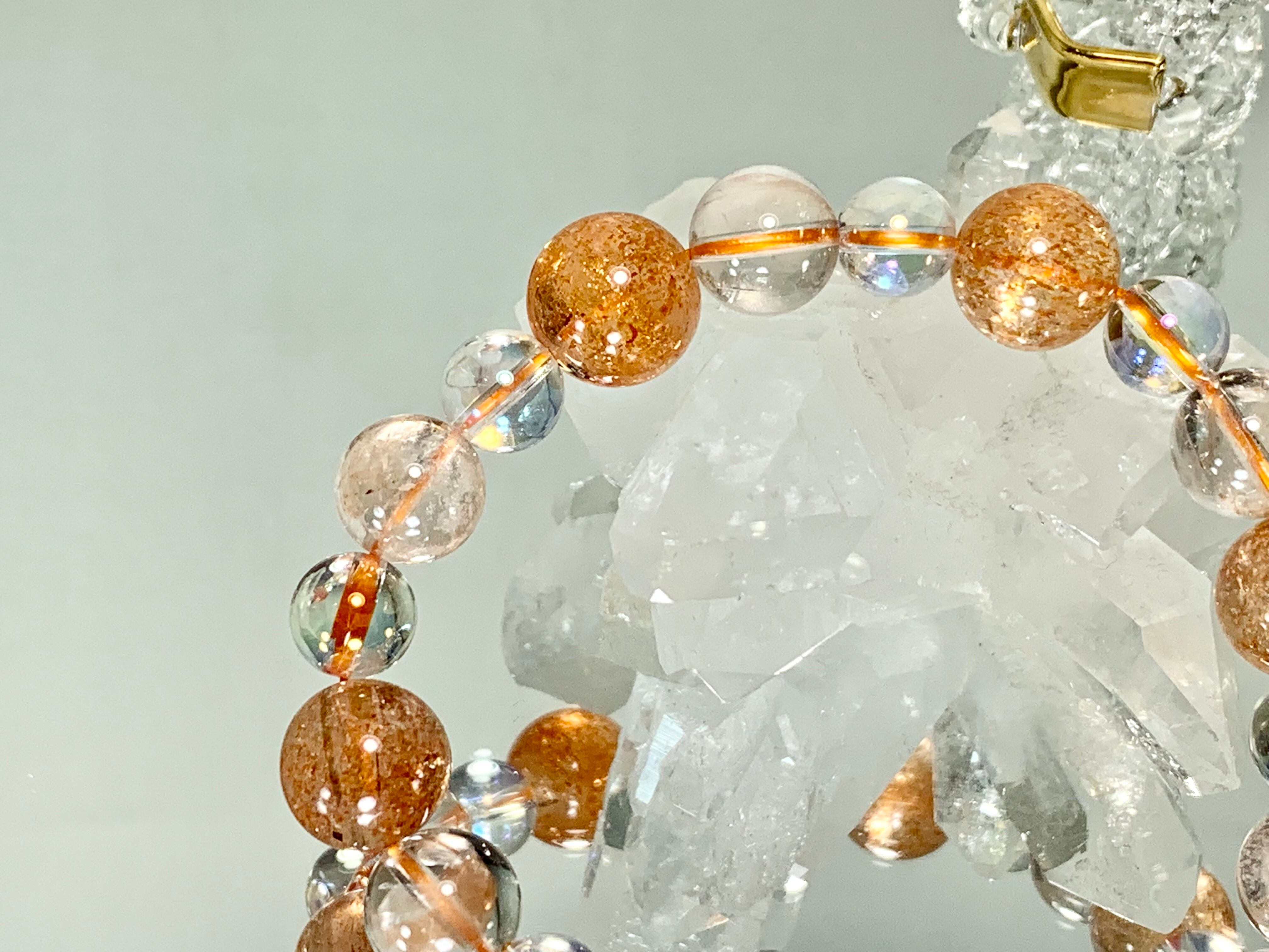 サンストーン11.5㎜玉、ピンククォーツ10㎜玉、オーロラ水晶8㎜玉
